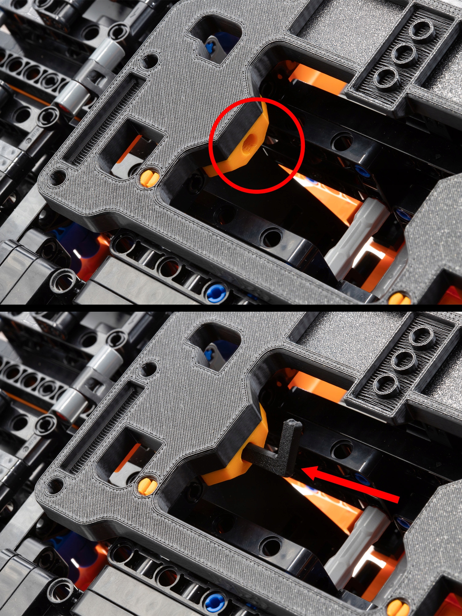 Wsuń pin bezpieczeństwa w odpowiednie miejsce, aby zabezpieczyć model przed przypadkowym zsunięciem.