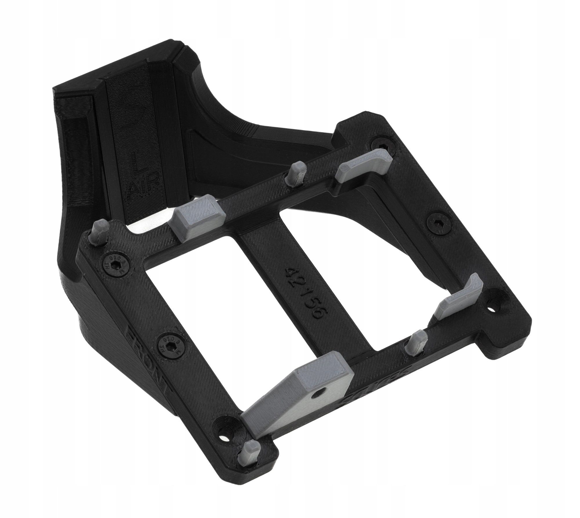 Zamontuj płytkę montażową na ramiona uchwytu AIR-L za pomocą śrub M4x12, wybierając odpowiedni kierunek przodu modelu (lewo lub prawo).
