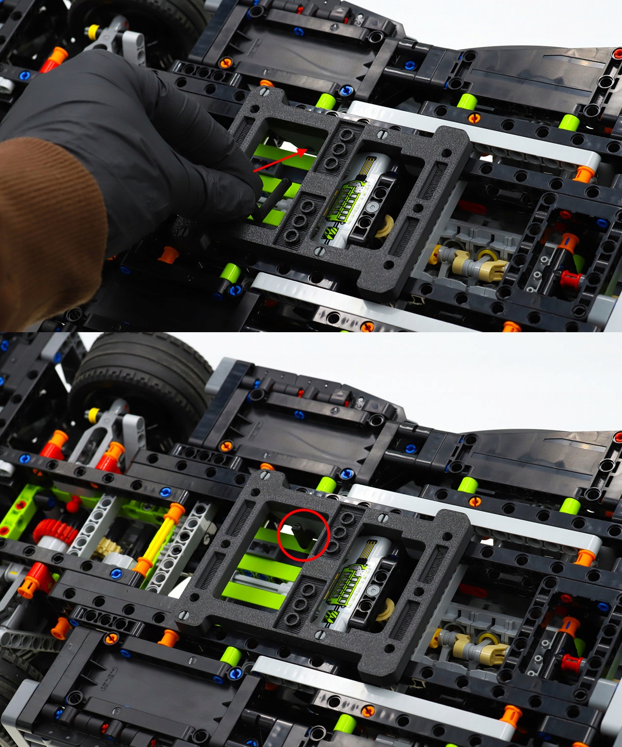 Wsuń pin bezpieczeństwa w odpowiednie miejsce, aby zabezpieczyć model przed przypadkowym zsunięciem.